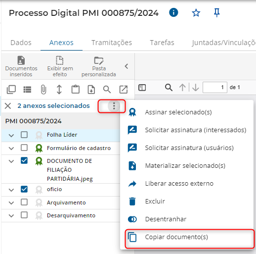 A fim de agilizar as ações, foi incluída a funcionalidade de cópia de documentos entre processos. Dessa forma, o usuário não precisará realizar o download de documentos e inseri-los de forma manual em outro processo.
