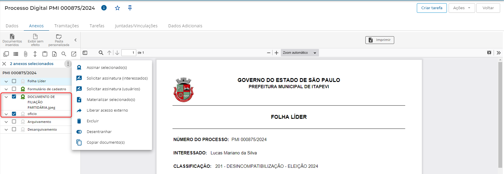 4 . Os documentos importados serão identificados, na pasta digital, com o número do processo original do qual foram copiados.