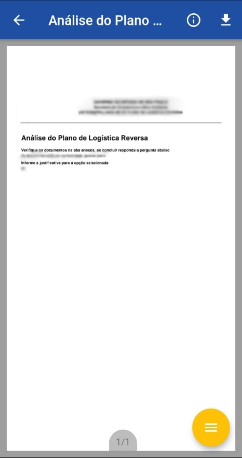 7 – Ainda nesta visualização é possível fazer o download do anexo, assiná-lo, compartilhar por meio de outros aplicativos (tais como WhatsApp, Bluetooth, e-mail) ou ainda materializá-lo (baixar o anexo com a tarja de assinatura).
