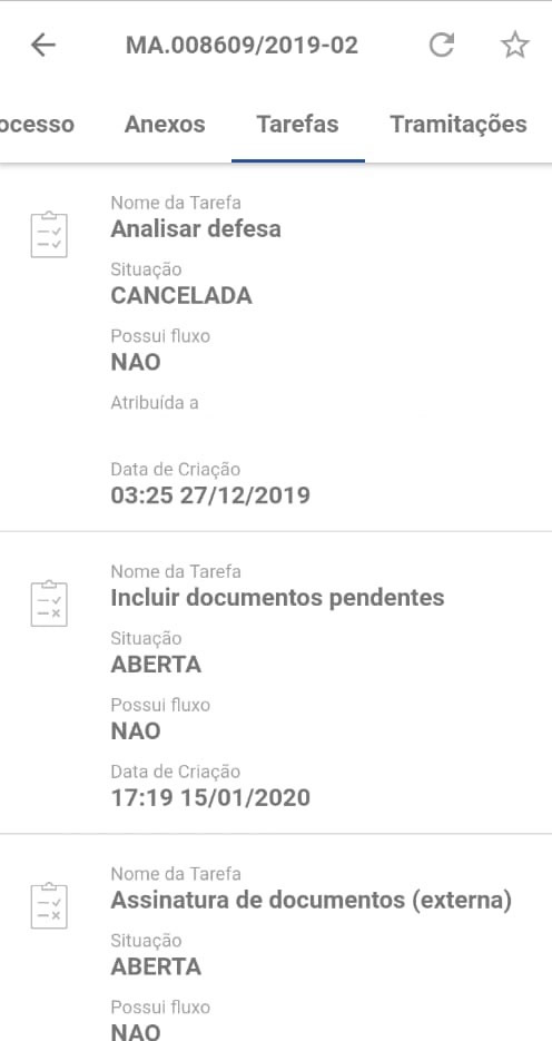 ? Como conferir no aplicativo quais tarefas foram realizadas no processo?