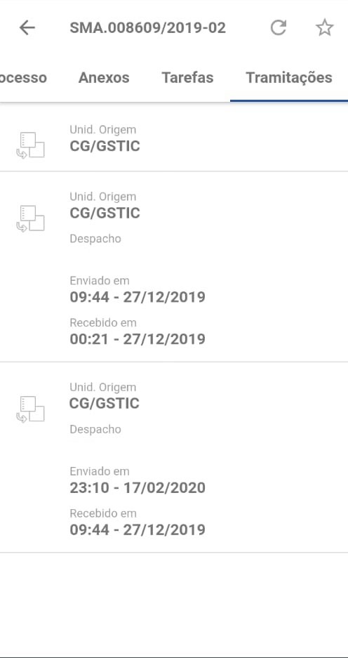 Você poderá verificar os seguintes dados: unidade de origem, despacho, data de tramitação e data de recebimento.