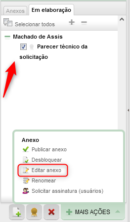 Para editar um anexo em elaboração, siga o passo a passo: